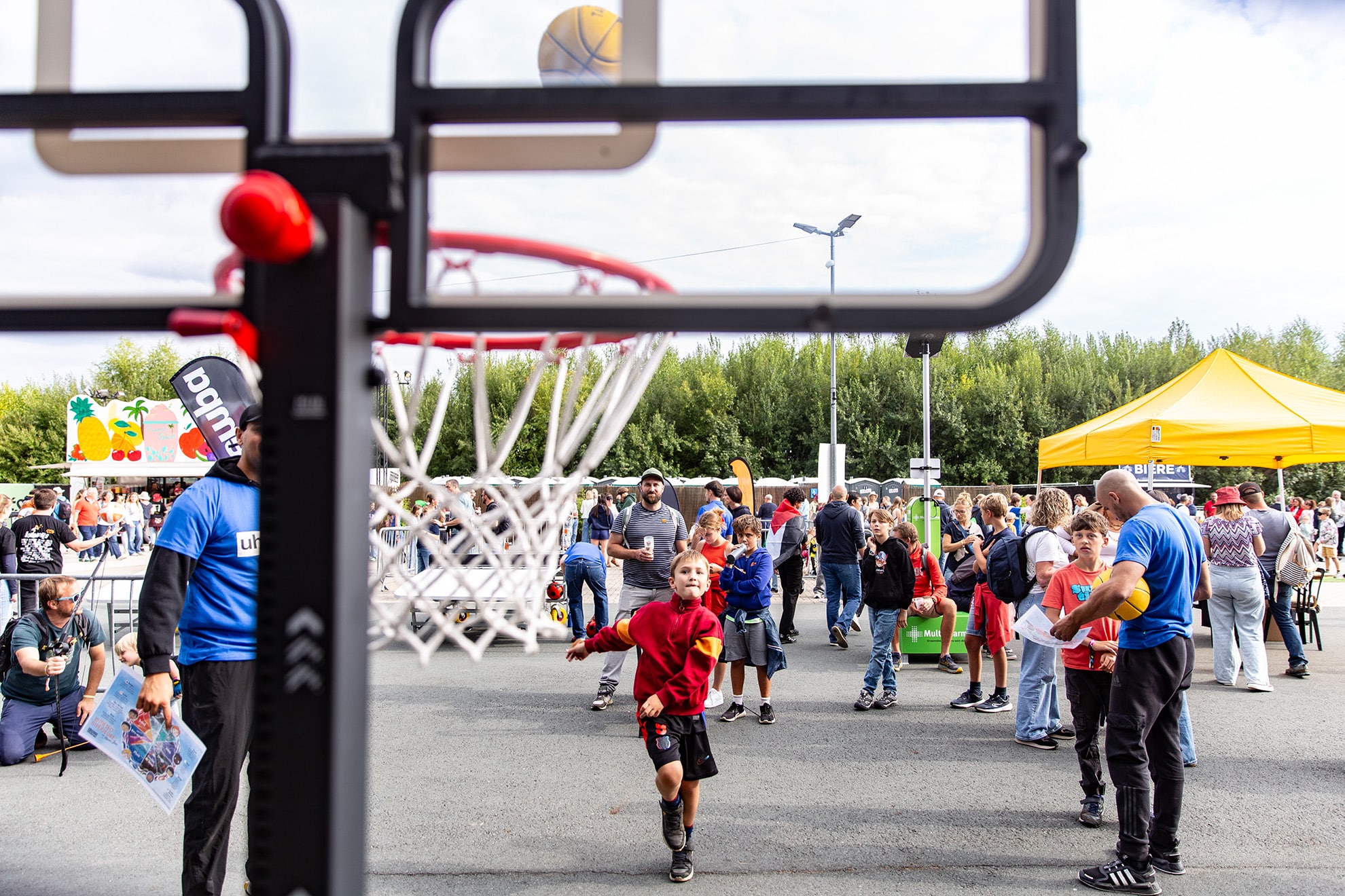 Au festival des Solidarités en cette fin de mois d’août, le soleil est chaud. L’averse est passée, les enfants, les ados et leurs parents se pressent sur le stand sportif qui s’est installé pour la première fois sur le site Ecolys à Namur. Mbo Mpenza et toute l’équipe de son ASBL Impala Performance ont mis en place un espace de jeux sportifs avec du foot pour dribbler entre les cônes, du handball sur un mini terrain et du rugby à l’aveugle. L’ancienne vedette des Diables rouges et ses coachs sont présents pour expliquer les activités et sensibiliser au respect.